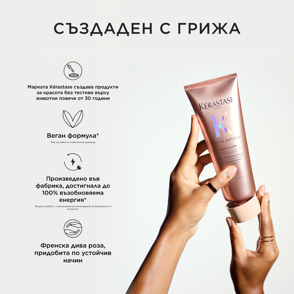 Знаете ли, че себумът и замърсяването са едни от основните причини за липса на блясък? Когато косъмът е увреден или изложен на влага, отворената кутикула изглежда неправилна и придава матов ефект на косата, затова е необходимо тя да бъде хидратирана. Когато повърхността на косата е изгладена, светлината се отразява от повърхността така, че придава огледален ефект, а тя е сияйна. Серията Gloss Absolu със специалната технология Hydra Glazing е първата хидратираща грижа на марката Kérastase, която придава кристален блясък. Комбинацията от тези продукти осигурява на всеки тип коса 360° кристален блясък и гладкост.