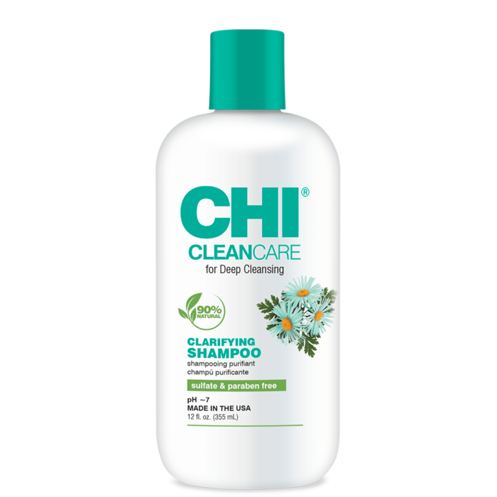 CHI CleanCare Clarifying Shampoo е шампоан без сулфати, който нежно почиства косата и скалпа в дълбочина и елиминира замърсяванията от околната среда и натрупванията от стилизиращи продукти. Формулата с алое вера и синя лайка възстановява оптималните нива на хидратация, подхранва и повишава здравината на косата. Добавените копринени протеини подобряват еластичността и осигуряват устойчивост срещу накъсване и цъфтящи краища. CHI CleanCare Clarifying Shampoo почиства без да отмива естествените и полезни масла, успокоява кожата на скалпа, укрепва и съживява косата, придава красив и естествен блясък. Осигурява защита от неблагоприятните въздействия на околната среда, придава на косата здрав и добре поддържан вид, прави я копринено мека и гладка.