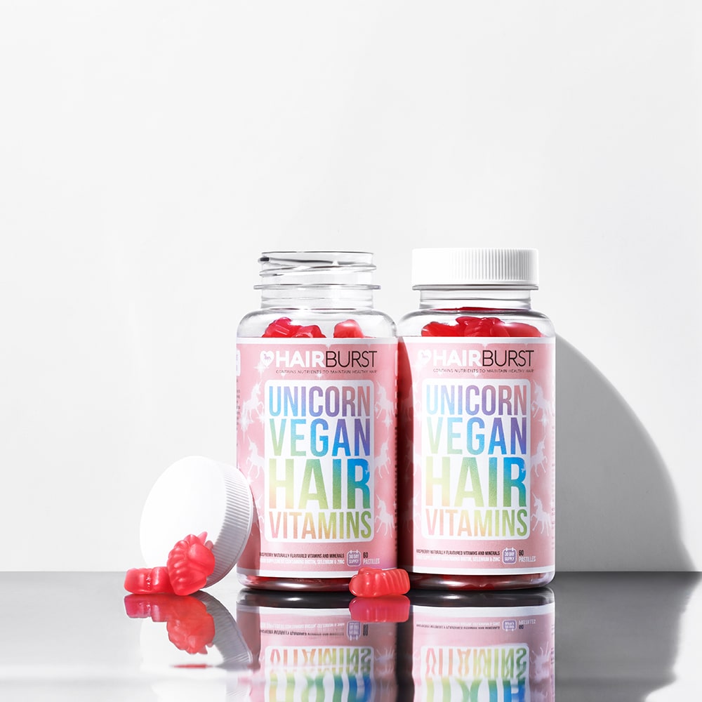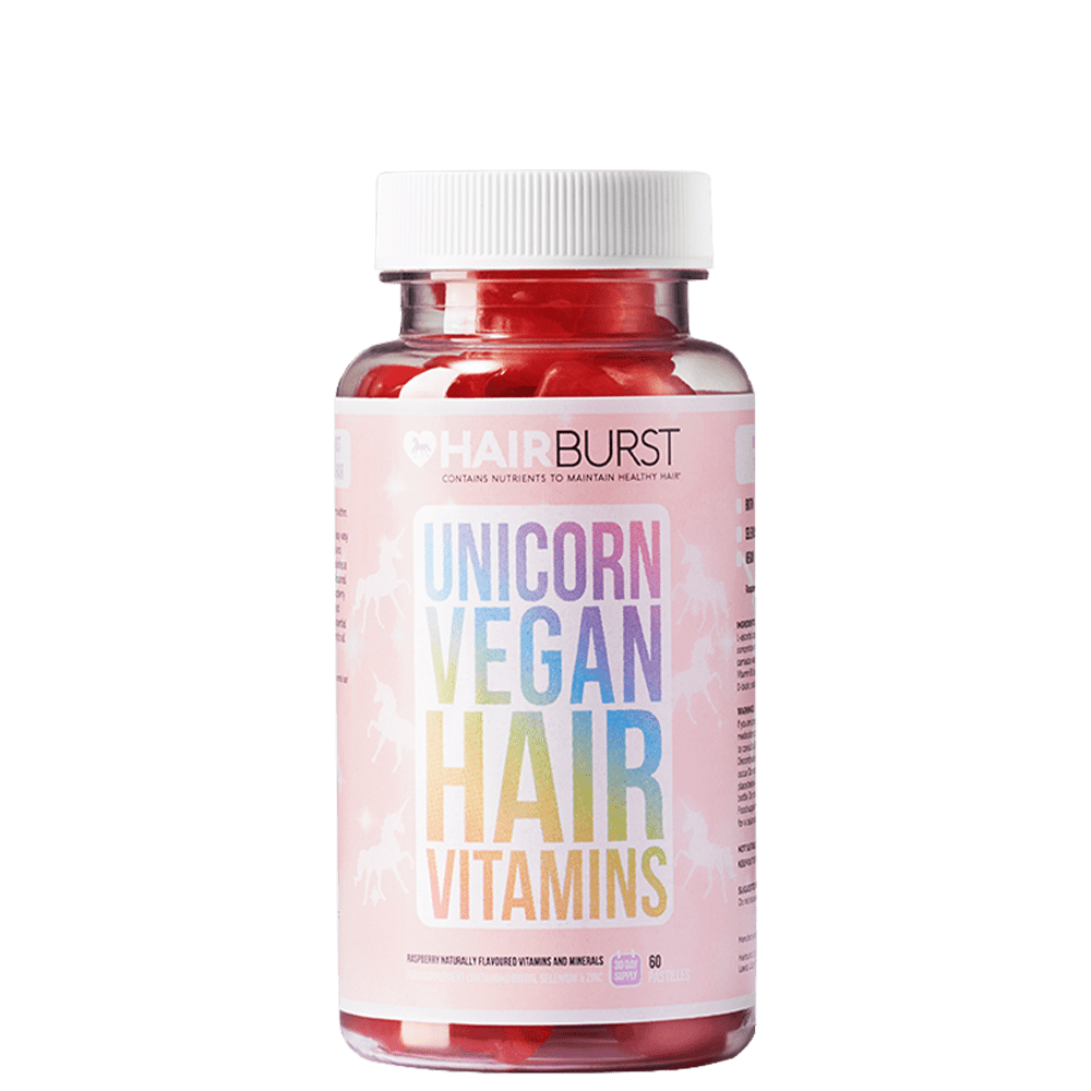 Hairburst Unicorn Vegan Hair Vitamins са веган витамини под формата на еднорози, формулирани да стимулират растежа на косата. Дефицитът на ключови витамини може да бъде причина за накъсване, изтъняване на косата, косопад и забавен растеж. Дъвчащите веган витамини подхранват косата отвътре-навън, като я снабдяват с ключови и необходими минерали – биотин, селен и цинк.