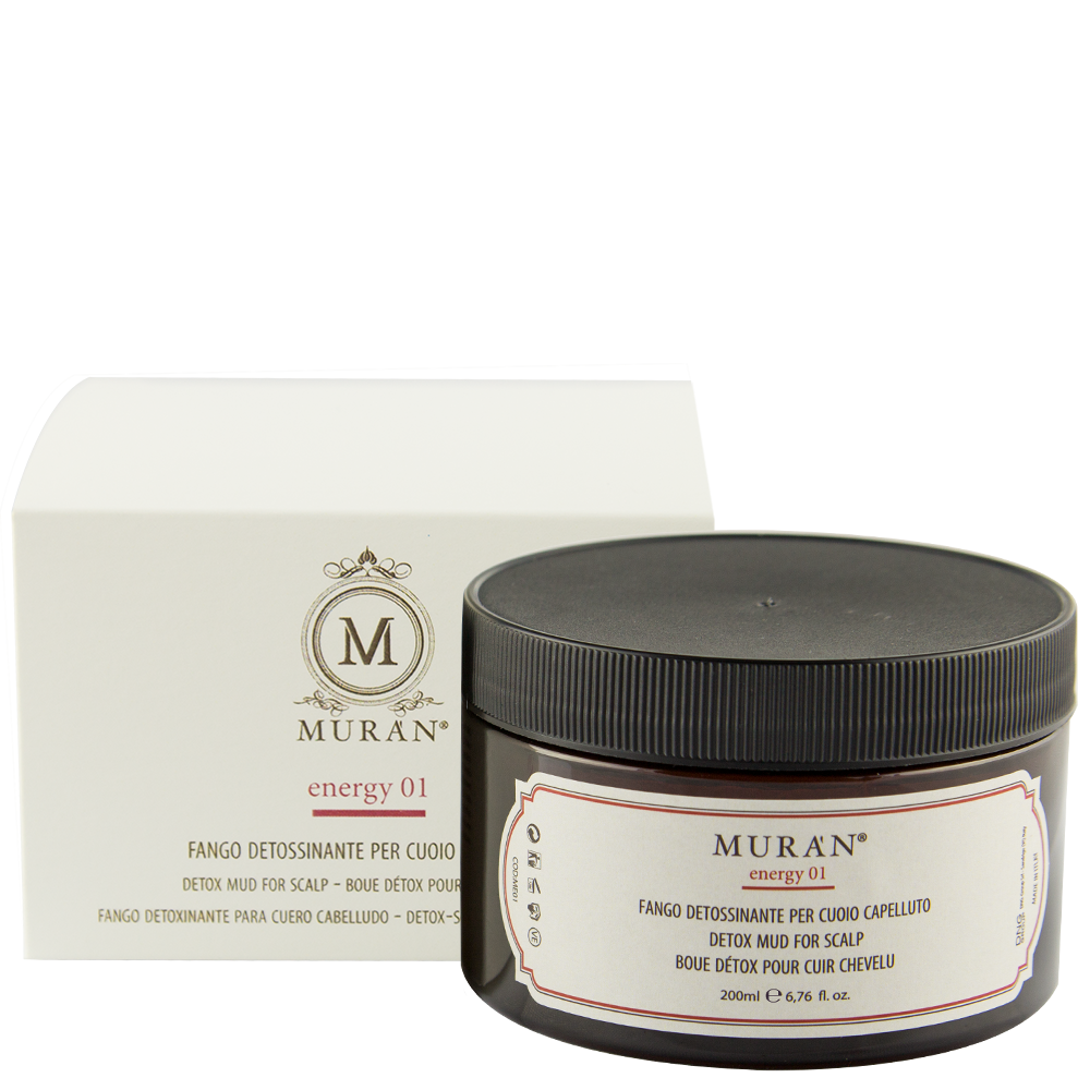 Детокс скраб за енергизиране на скалпа Energy 01 Scalp Detoxifying Mud нежно ексфолира и стимулира растежа на здрава коса. Освобождава токсините от косата и скалпа, помага за бърза регенерация на клетките и предотвратява бързото стареене на косата, като доставя повече кислород към тъканите.