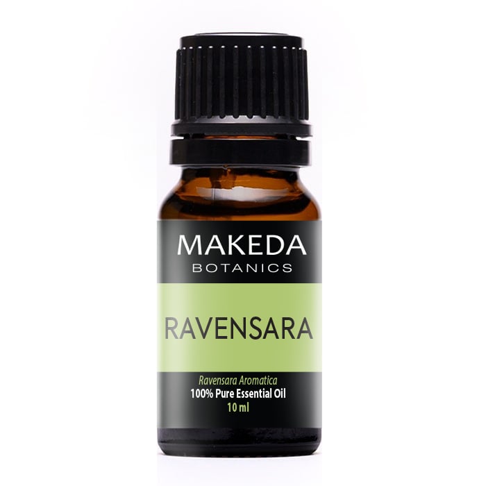 Етеричното масло от равенсара MAKEDA Botanics има редица ползи за здравето, което се дължи на аналгетичните, антиалергичните, антимикробните, антидепресивните, противогъбичните, антибактериалните, антивирусните, дезинфекциращите, диуретичните, релаксиращите и тонизиращите му свойства. Равенсара е голямо тропическо дърво, което вирее в източния бряг на Африка на остров Магадаскар, където е известно като „лек за всичко“.