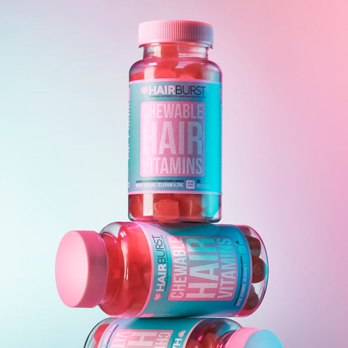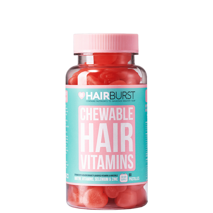 Hairburst Chewable Hair Vitamins са дъвчащи витамини под формата на сърца, които правят косата по-здрава и дълга при редовен прием. Съдържат комбинация от ключови минерали – биотин, селен и цинк. Хранителните добавки се борят с косопада, накъсването на косата и бавния растеж.