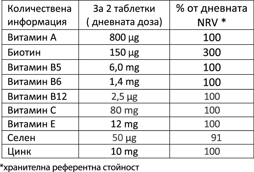 Начин на употреба: Приемайте по две таблетки веднъж дневно. Препоръчва се приемът на хранителната добавка да е комбиниран със закуска. За оптимални резултати, използвайте в рамките на поне 90 дни. Поради съдържанието на Витамин А, не се препоръчват за употреба от бременни жени, жени, които желаят да забременеят и такива в менопауза.