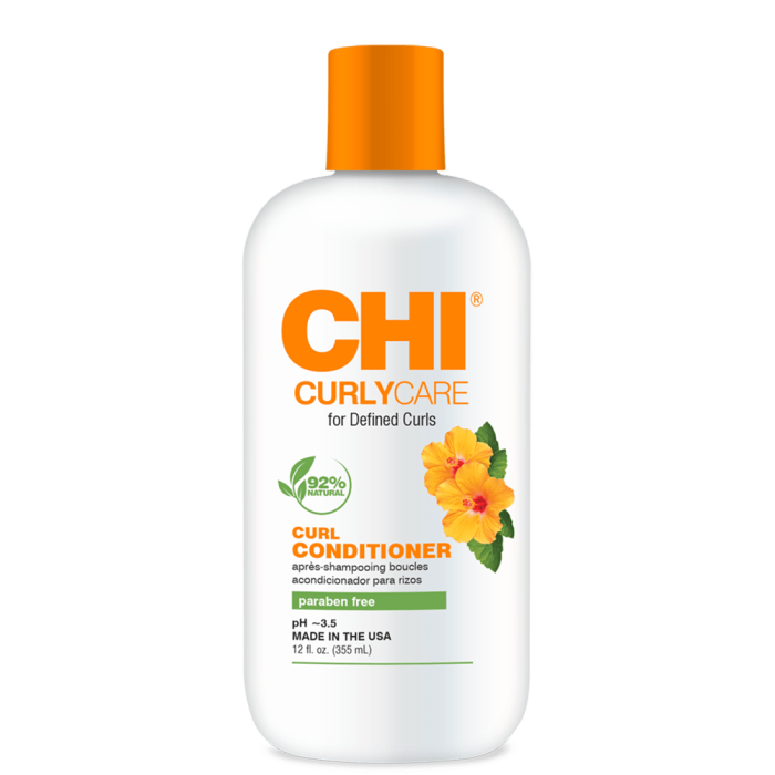 CHI CurlyCare Curl Conditioner е балсам с 92% естествени съставки за лесно разплитане и оформяне на дефинирани къдрици. Нежна формула, която хидратира и подхранва къдравата коса, възстановява еластичността и придава естествен блясък. Изключителният комплекс от алое вера и оранжев хибискус укрепва и защитава, придава мекота и създава гладка текстура на къдравата коса. Има анти-фриз ефект и прави къдриците еластични и лесни за оформяне. Добавените копринени протеини осигуряват оптимални нива на хидратация в косъма, придават мекота и красив блясък, намаляват увреждането и спомагат за оформяне на перфектни и пружиниращи къдрици.