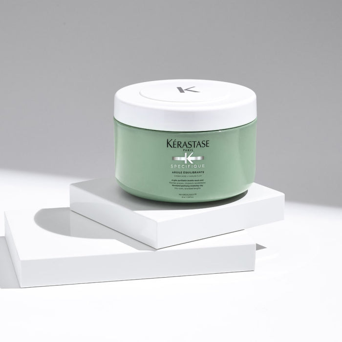 Argile Equilibrante е глина, която почиства в дълбочина и нежно премахва натрупаните замърсявания от скалпа и косата. Придава обем от корените и осигурява чувство за свежест. Благодарение на активните съставки на коалинова глина, балансира нивата на себум и успокоява кожата на главата. В резултат скалпът е почистен и успокоен, а косата е изпълнена с обем и плътност. Подходяща е за употреба веднъж седмично вместо шампоан.