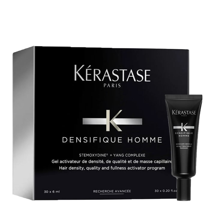 Ампулата за мъже Kérastase Densifique Homme е специално създадена за сгъстяване на косата. Формулата с Биотин я прави подходяща за нуждите на всеки тип коса.  Продуктът е хипоалергенен и може да се използва и при чувствителен скалп. Увеличава обема на косата. Помага за поддържане на гъстотата и плътността на косата. Подобрява външния вид на косата, като дава повече плътност и жизненост.