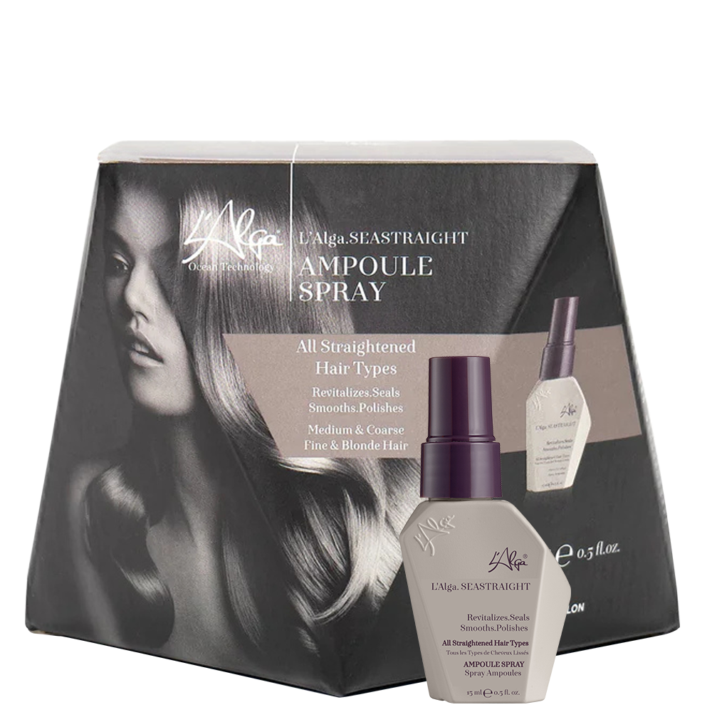 Ампула спрей SEASTRAIGHT незабавно стартира и ускорява оздравителния процес на косата. Формулата с ниско pH затваря кутикулата на косъма, като по този начин прави косата перфектно гладка и с ламиниран блясък. Интензивно възстановява увредените участъци и има гланциращ ефект. Запазва косата изправена за по-дълго. Няколко впръсквания са напълно достатъчни, за да преобрази косата от непокорна и стърчаща, в идеално гладка, права, лъскава и супер възстановена. Усъвършенствана формула с революционния комплекс AlgaNord5™, в комбинация с хиалуронова киселина, термоактивен сусамов протеин и 7 кондициониращи агента осигуряват мека, огледално блестяща и здрава на вид коса, без стърчащи краища. Защитава цвета на боядисаната коса от избледняване.