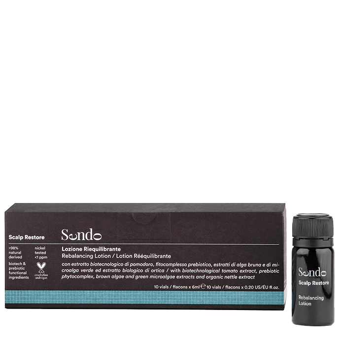 Rebalancing Lotion е ампула, която балансира производството на себум. Редовната употреба на ампулата предпазва скалпа от омазняване, като го поддържа чист за по-дълго време. Формулата с пребиотичен фитокомплекс балансира микробиома на скалпа и го поддържа в оптимално здравословно състояние. Има противовъзпалително, освежаващо и ревитализиращо действие, благодарение на екстрактите от водорасли.