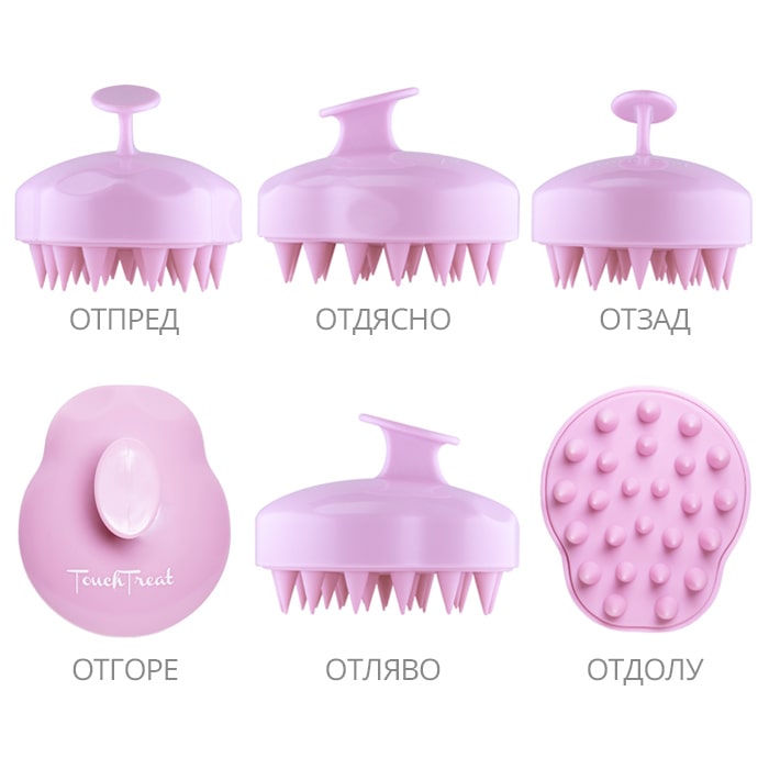 Touch Treat e масажна четка за скалп с мултифункционално действие, вдъхновена от акупунктурата. Използвана под душа, подпомага по-лесното разпенване на шампоана, като същевременно ефективно почиства скалпа. Активира кръвообращението, стимулира растежа на косата, намалява сърбежа и раздразненията.
