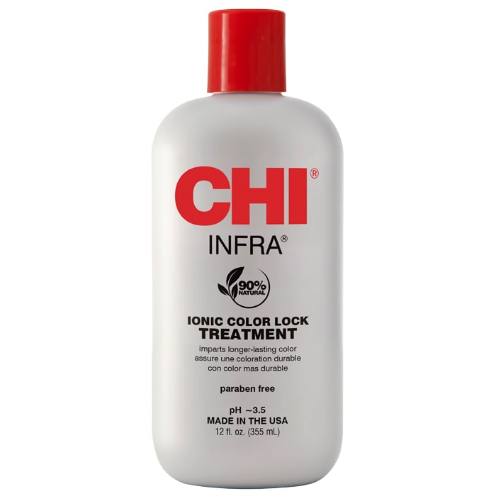 CHI Color Lock Treatment е чудесна маска за запазване на цвета на косата след боядисване. Възстановява структурата на косата, като запечатва кутикулата на косъма и по този начин запазва цвета на боядисаната коса за по-дълго. Неутрализира химическите остатъци в косата и стимулира процеса на регенерация. Формула с копринени протеини, които укрепват структурата на косъма и поддържат оптимални нива на хидратация. Молекулите на коприната проникват дълбоко в косъма и подобряват еластичността му. Резултатът е жизнена и хидратирана коса, изпълнена с блясък и цвят, който не остава незабелязан. Нанася се лесно, което позволява да се използва като ежедневна грижа за запазване и поддържане на свеж, наситен и равномерен цвят.