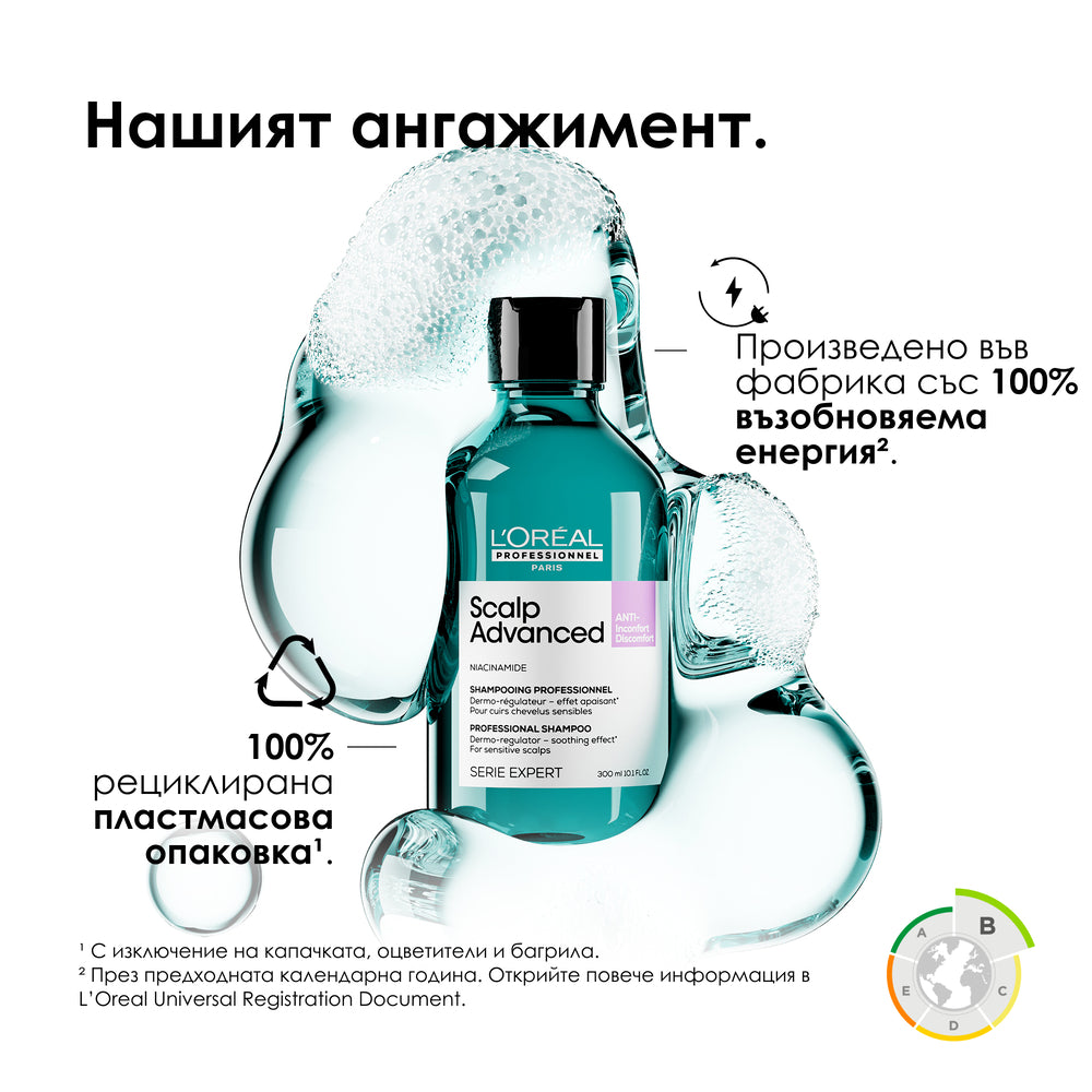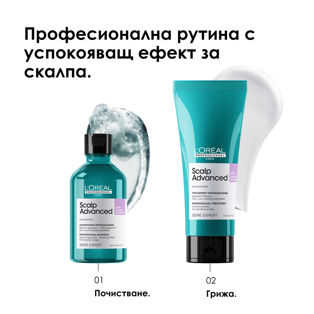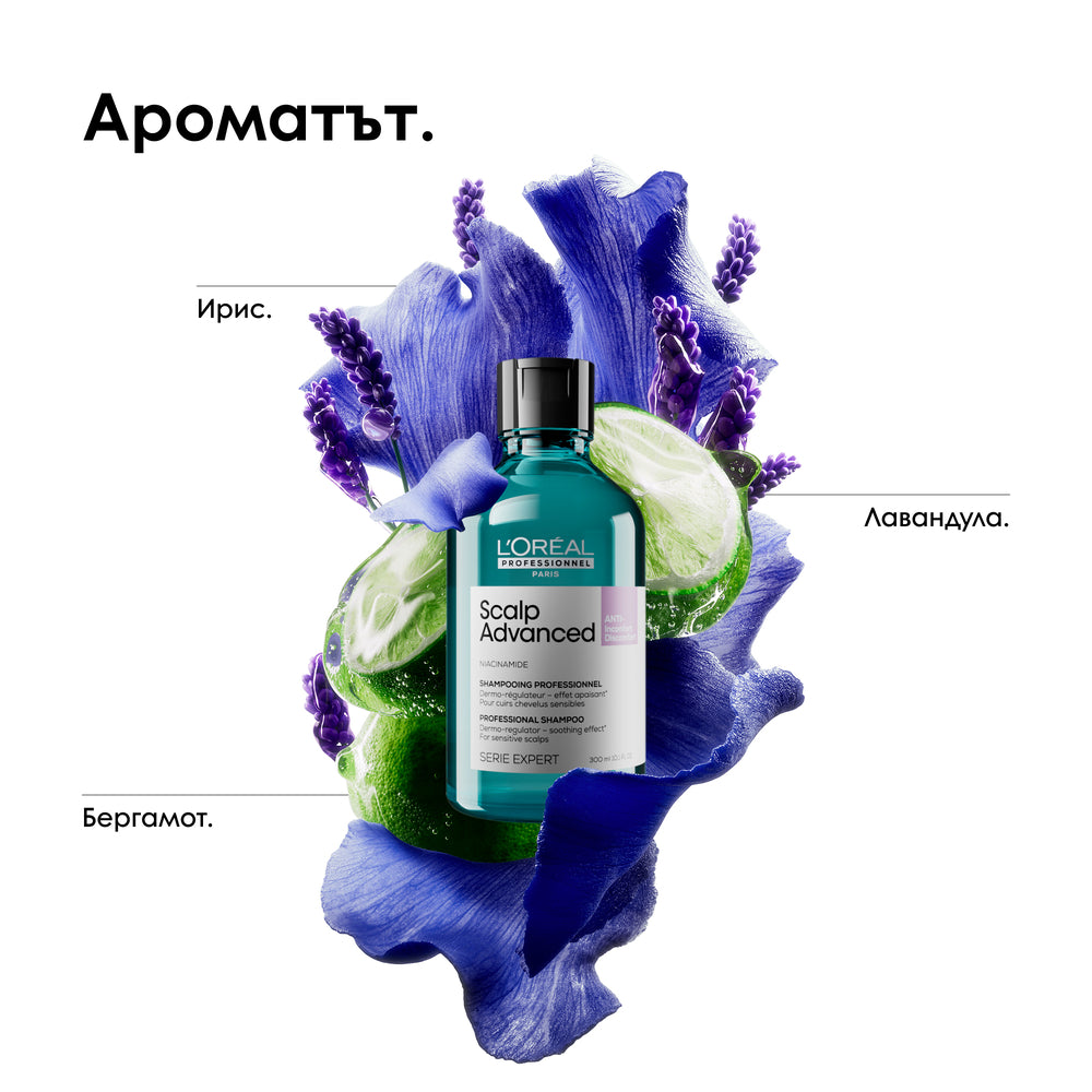 Шампоан за чувствителен скалп против дискомфорт Scalp Advanced е дерматологично тестван, създаден от професионалисти и одобрен от трима експерти по скалпа. Шампоанът деликатно и ефективно почиства скалпа, като същевременно го успокоява. Формулиран специално за чувствителен скалп, предразположен към раздразнения.