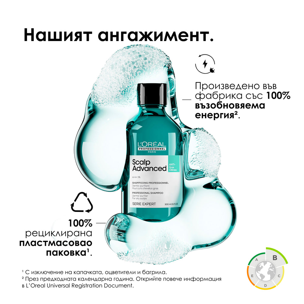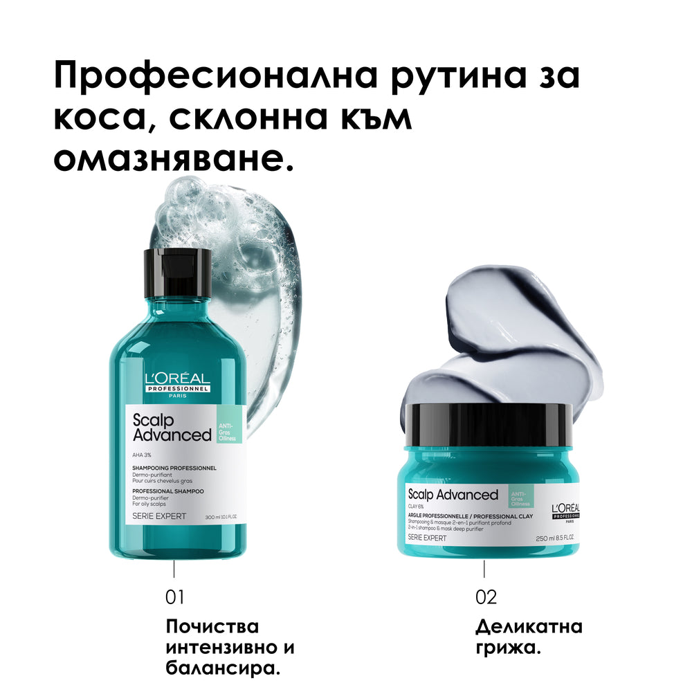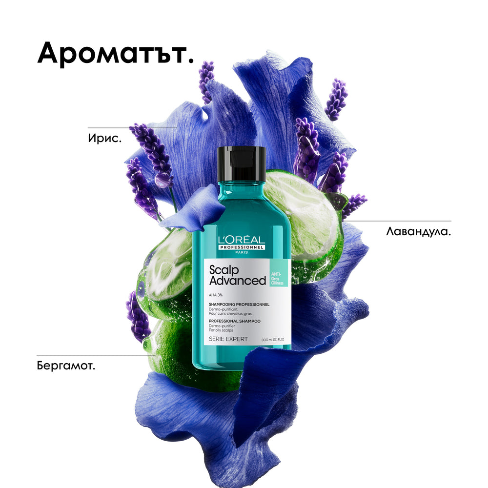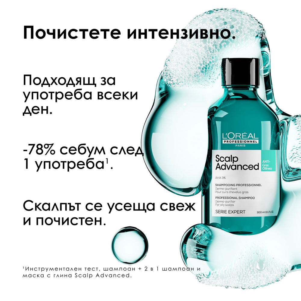 Почистващ шампоан против омазняване Scalp Advanced е дерматологично тестван, създаден от професионалисти и одобрен от трима експерти по скалпа. Шампоанът ефективно възстановява естествения баланс на скалпа, предразположен към омазняване. Балансира отделянето на себум почиства оптимално и хидратира косата. Отключва силата на дерматологични активни съставки за справяне с проблемния скалп.