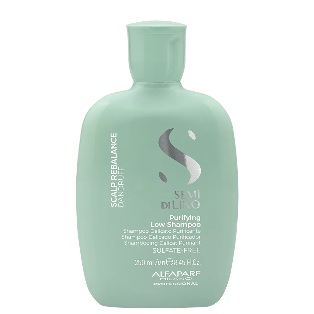 Alfaparf Scalp Rebalance Purifying Low е шампоан, който нежно почиства и балансира скалпа, действайки против пърхот. Притежава макромолекулярна структура, която образува защитен филм около косъма и го предпазва от прах, замърсяване и тежки метали. Нежно почиства косата и кожата на главата, като елиминира пърхота, придава блясък и запазва цвета наситен.