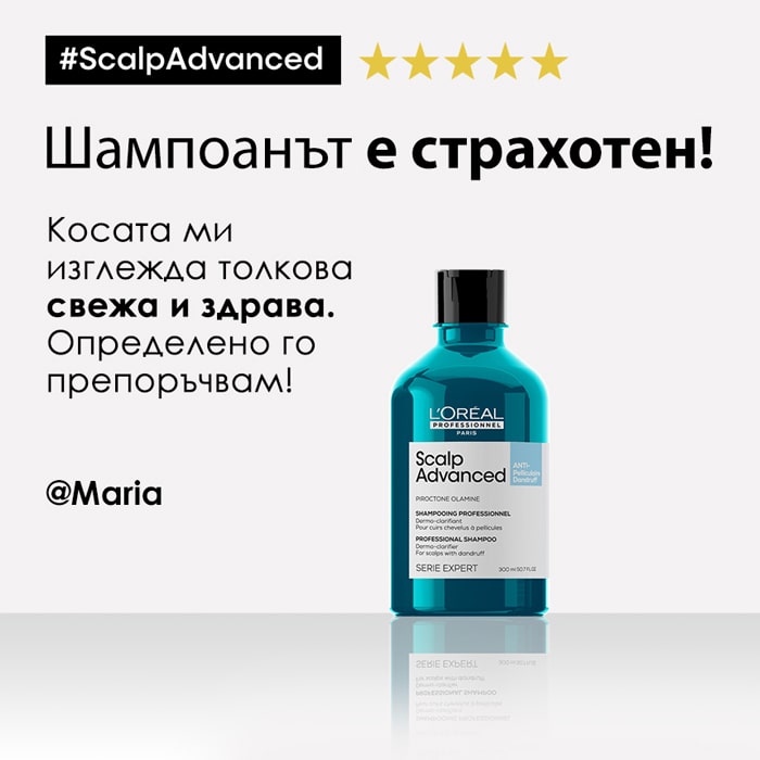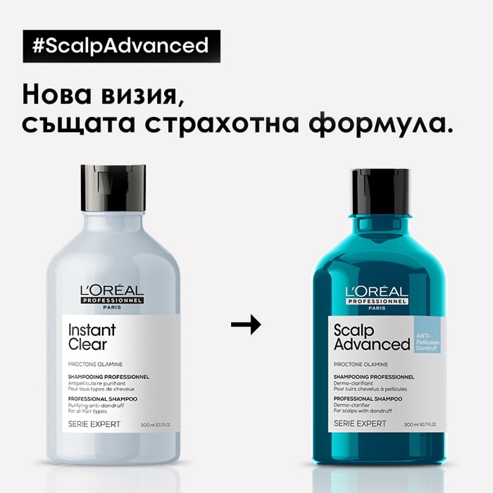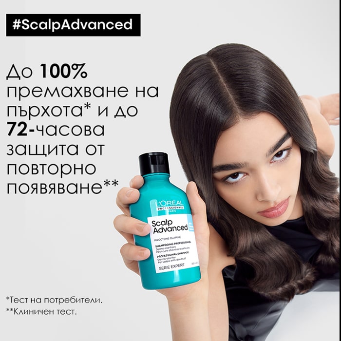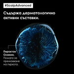 Почистващ шампоан против пърхот Scalp Advanced е дерматологично тестван, създаден от професионалисти и одобрен от трима експерти по скалпа. Шампоанът деликатно и ефективно премахва пърхота, почиства оптимално и успокоява скалпа. Отключва силата на дерматологични активни съставки за справяне с проблемния скалп. Кремообразната текстура се нанася лесно и същевременно предпазва от появата на нов пърхот.