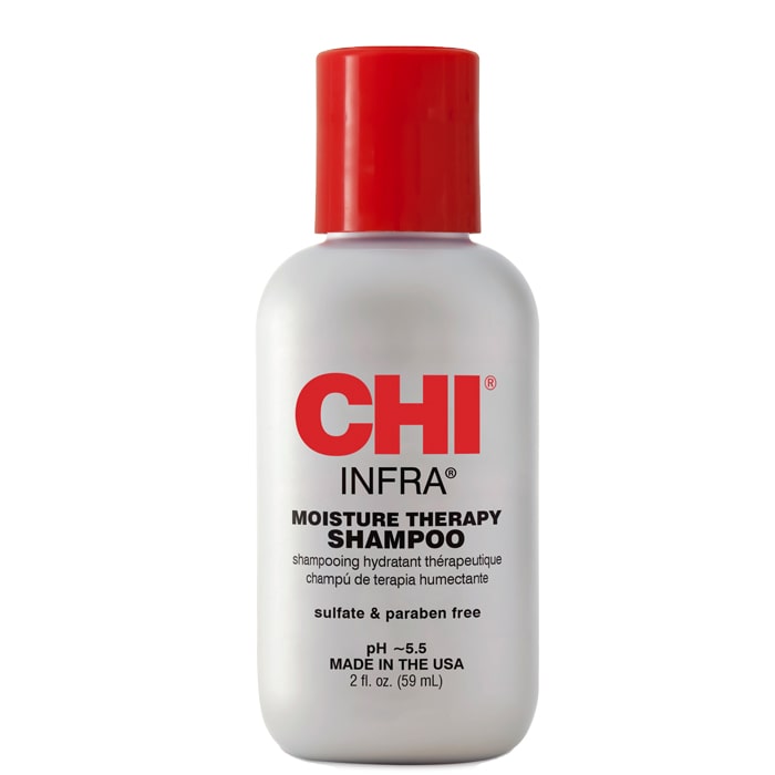 Шампоан Infra почиства косата и скалпа, прониквайки в косъма, за да го подсили отвътре-навън. Подобрява нивата на хидратация в косъма и в кожата на главата. Притежава мека формула, подходяща за ежедневна употреба и всеки тип коса. Ниското му pH 5.5 го прави изключително подходящ и за боядисани коси, защото предпазва цвета от избледняване. Формулата му с 90% натурални съставки включва: копринени протеини, кератин и витамин В5, които имат комплексно действие върху косата – изглаждат, озаряват, заздравяват и хидратират.