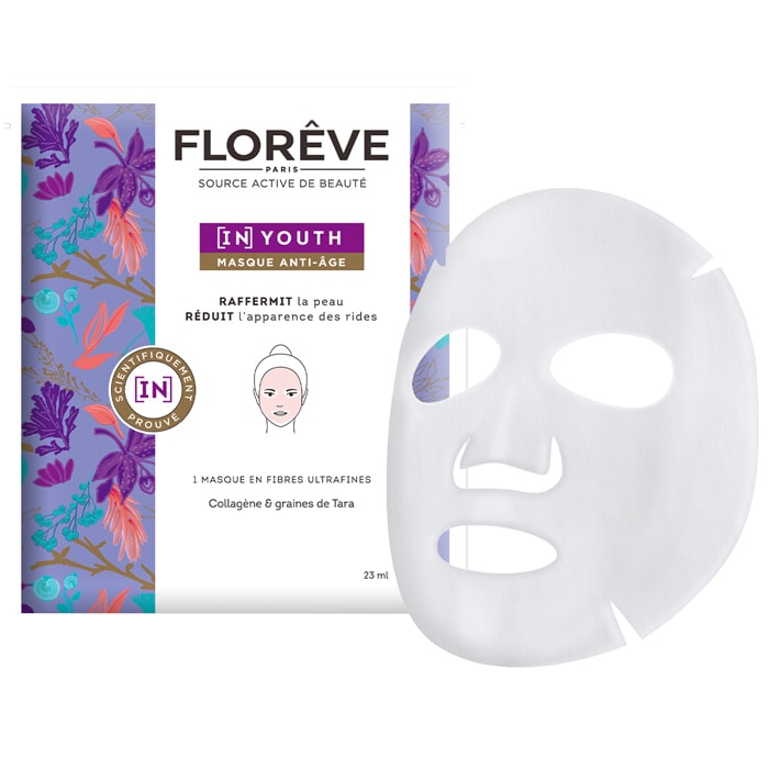 [IN] YOUTH Anti-Ageing Mask е маска от плат, изработена от ултра фини естествени влакна, която стяга кожата и намалява появата на бръчки само за 15 минути. Кожата се усеща стегната и освежена дълго след използване на маската.