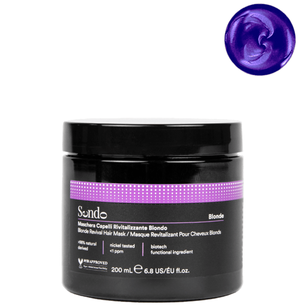 Маска Blonde Revival неутрализира жълтите оттенъци при естествено руса, изрусена и бяла коса. Подхранва в дълбочина и освежава цвета. Формулата с виолетови пигменти осигурява равномерен и студен, рус цвят. Тонираща маска Blonde Revival защитава от поява на жълти оттенъци и удължава трайността на постигнатия студен тон. Изглажда, омекотява и възвръща жизнеността на русата коса.