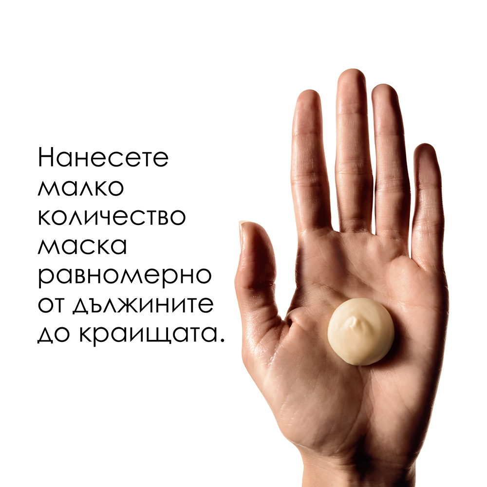 Маска за изтощена коса с, гелообразна текстура със съставки за усъвършенстване на повърхността на косъма, които не утежняват косата. Благодарение на формулата с протеин и омега-9, косата е моментално възстановена*, мека и блестяща. Без следи от златни частици след измиване. Подходяща за фина коса.