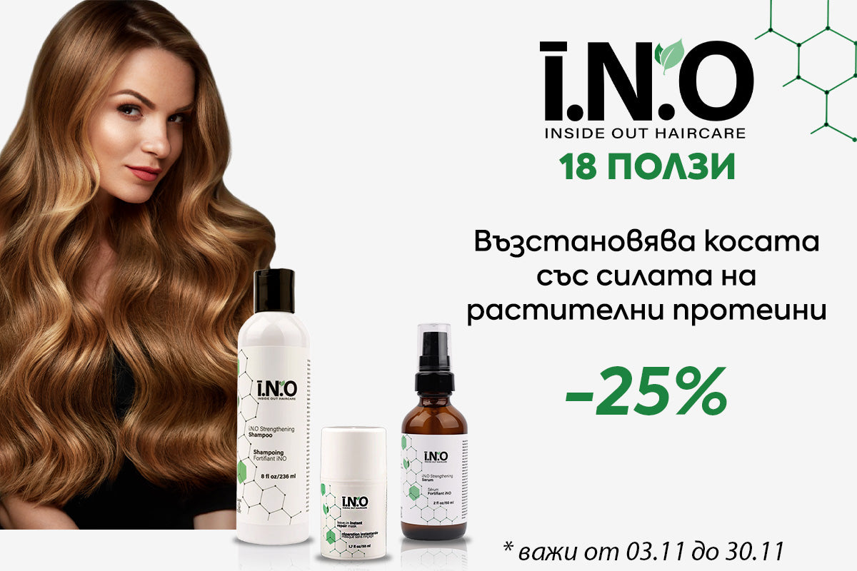 I.N.O. 18 ползи са американски революционни веган продукти, които възстановяват косата, благодарение на високото си съдържание на растителни протеини, с ефективна фитохимична технология.