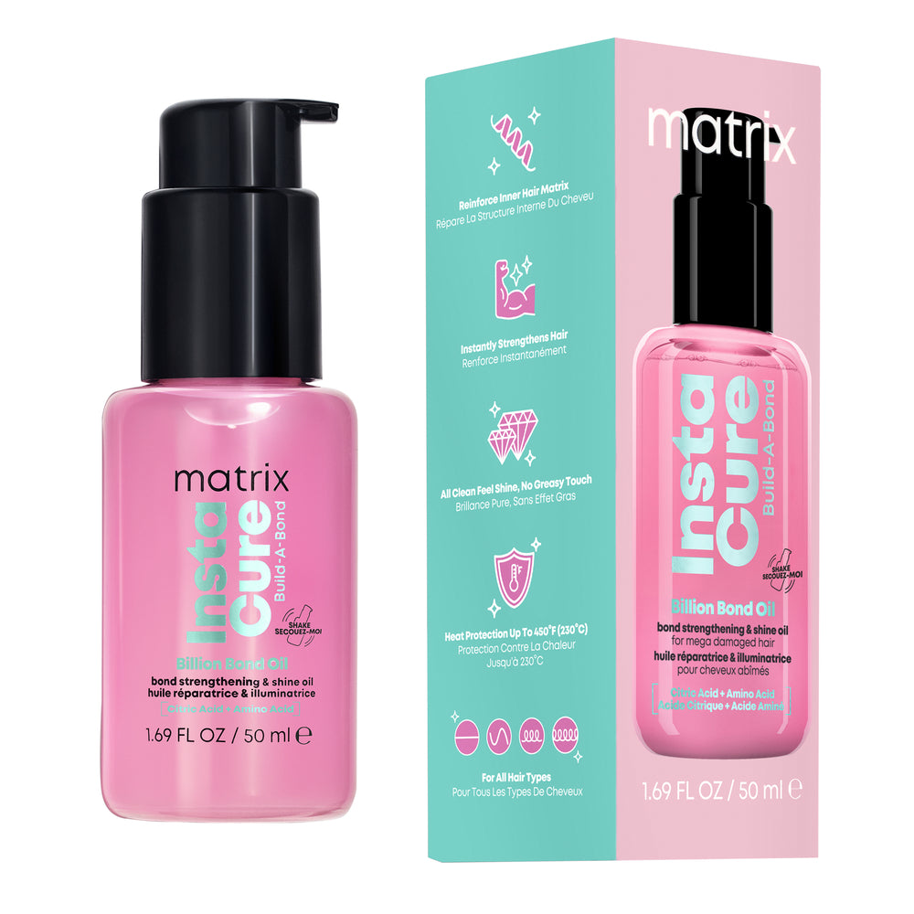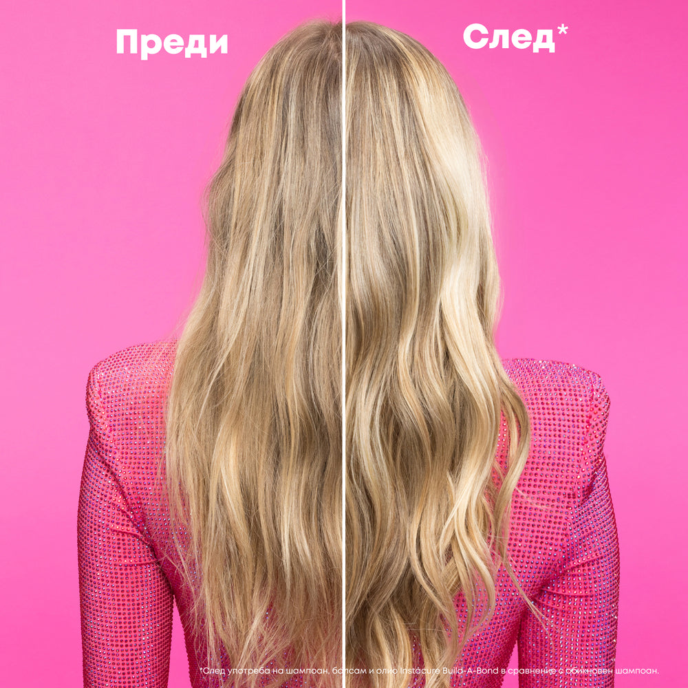Серията Instacure Build-A-Bond подсилва всеки тип увредена, изсветлена и химически третирана коса. Всеки продукт съдържа 1 милиард заздравяващи връзки, за коса като за милиард долара!