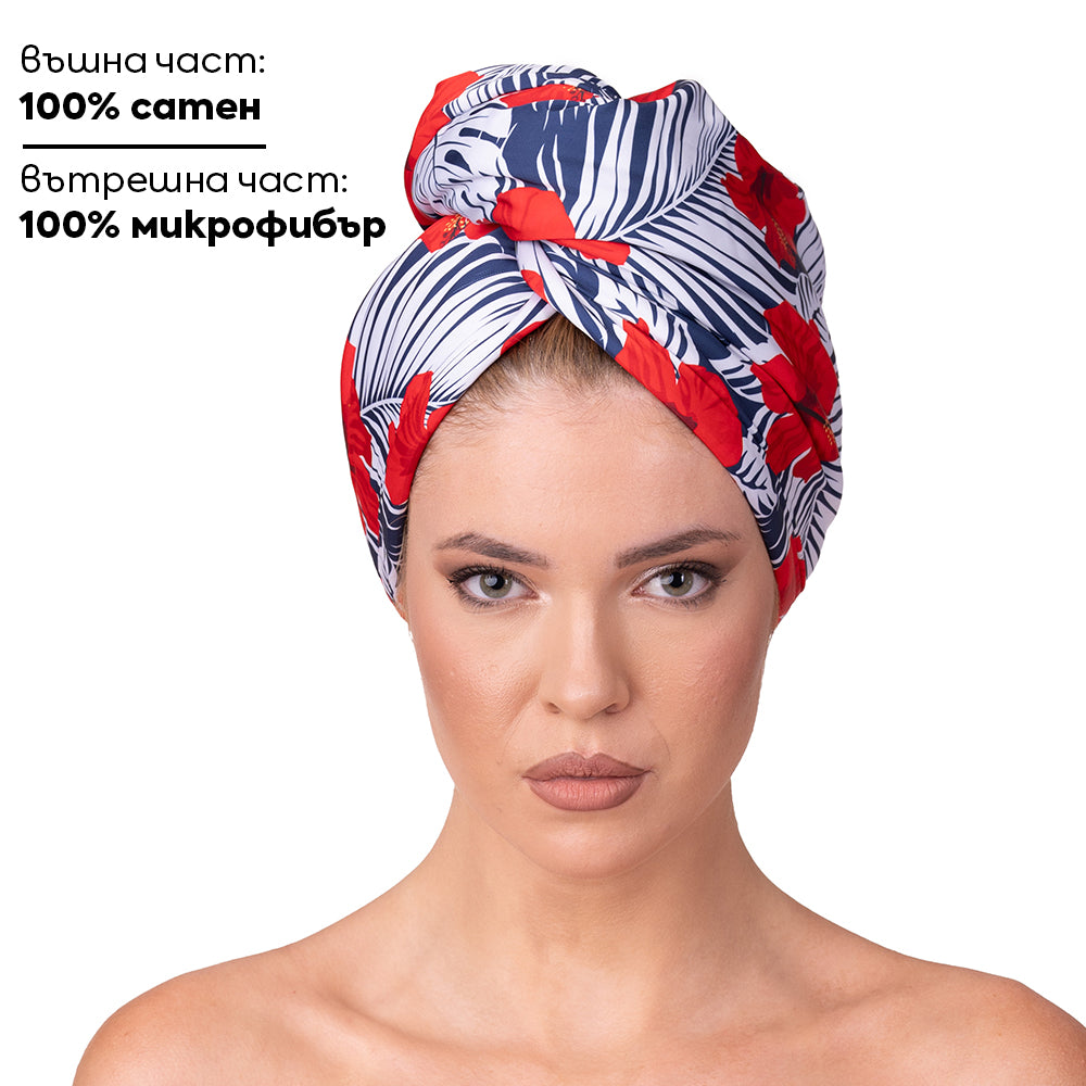 Мека кърпа, щадяща към косата. Супер абсорбираща за по-бързо изсъхване. UV защита.