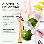 Шампоан с луксозен фин аромат на цитруси с флорални нотки – връхни нотки  на бергамот и лимон, средни нотки на сандалово дърво и базови нотки на ванилия и сандалово дърво.