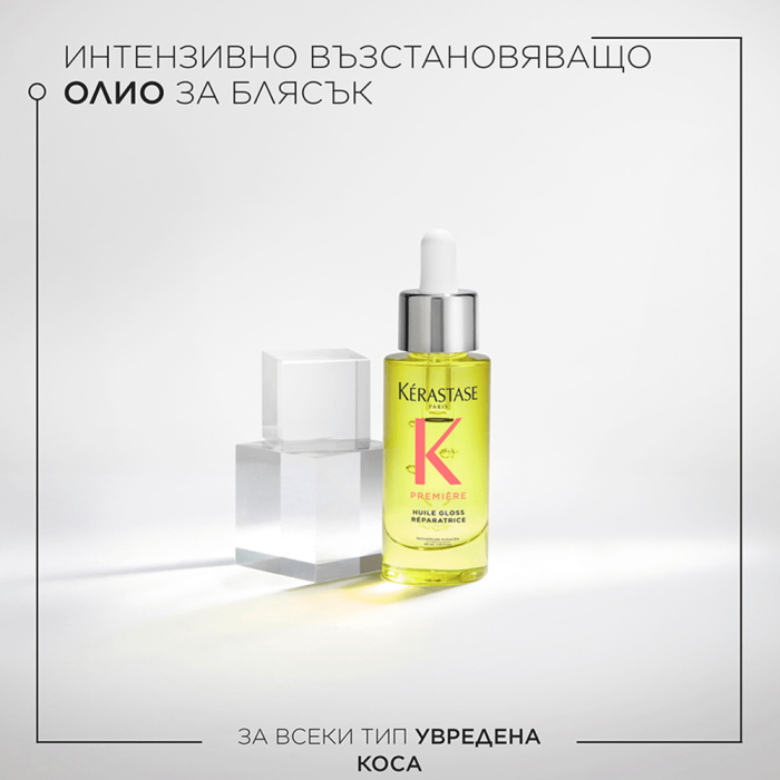 Интензивно възстановяващо олио за блясък Première Huile Gloss Réparatrice Hair Oil подсилва блясъка на увредената коса.