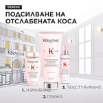 Серията Genesis на Kérastase предлага иновативна грижа против косопад без компромис по отношение на чувственото изживяване. Тя комбинира мощни съставки – клетки от еделвайс, корен от джинджифил и аминексил в луксозна формула, която действа против косопад, причинен от накъсване по дължините. Продуктите Genesis предпазват косата, интензивно подхранват и предотвратяват косопада.