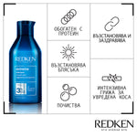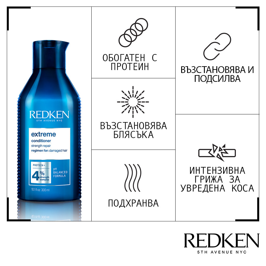 Грижа без изплакване за увредена коса: Грижа обогатена с протеинов комплекс. Действа като интензивен балсам, намалявайки накъсването вследствие на разресване и предотвратявайки последващо увреждане, като оставя косата силна, блестяща и еластична.