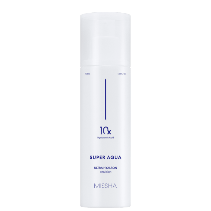 MISSHA Super Aqua Ultra Hyalron Emulsion е емулсия за интензивна хидратация и възстановяване на нивата на влага в кожата. Формулирана с 10 вида хиалуронова киселина, благодарение на които кожата е хидратирана, подхранена и освежена. Леката текстура на емулсията се абсорбира напълно и не остава мазен или лепкав слой.
