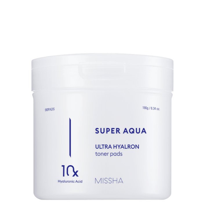 MISSHA Super Aqua Ultra Hyalron Toner Pads са тампони за лице с 10 вида хиалуронова киселина, които проникват ефективно в кожата и я хидратират в дълбочина. Осигуряват интензивно подхранване на кожата и спомагат за поддържането на оптималните нива на влага. Подходящи са за всеки тип кожа, особено суха и чувствителна кожа.