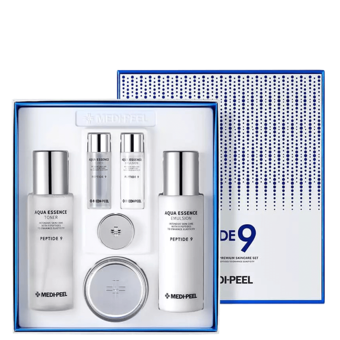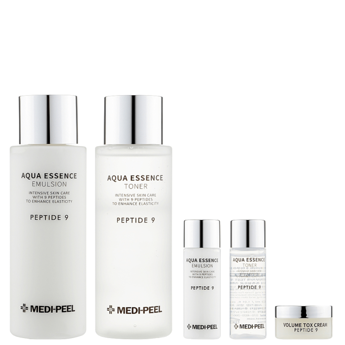 Емулсията Medi-Peel Peptide 9 Aqua Essence Emulsion хидратира кожата и видимо я изпълва. Комплексът от 9 вида пептиди стимулира производството на колаген и еластин. Volufiline и IDEALIFT са международно патентовани съставки, които имат лифтинг ефект и подобряват еластичността на кожата.