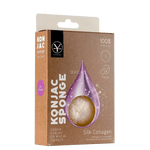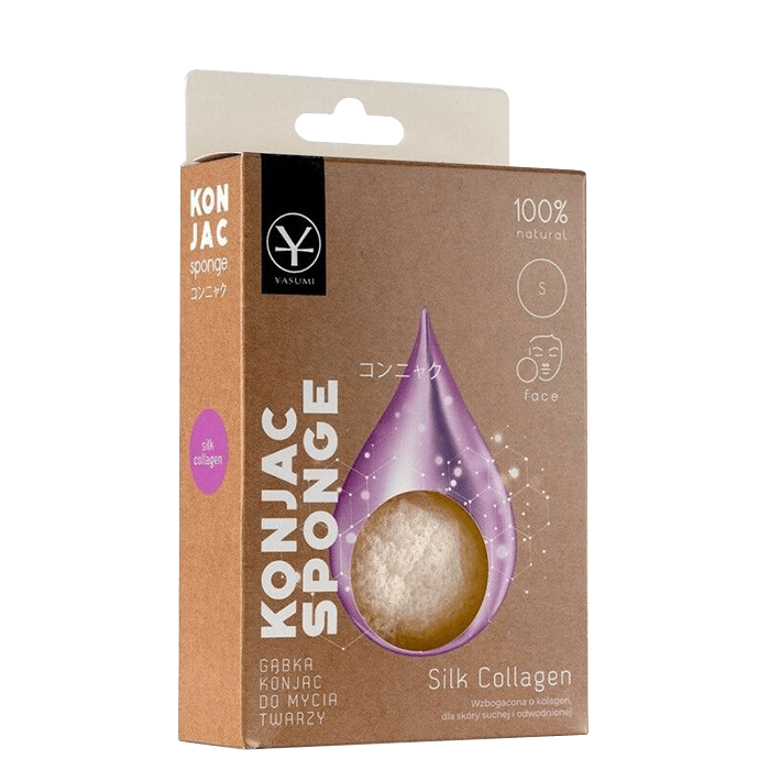 Yasumi Konjac Silk Collagen е 100% натурална почистваща и масажна гъба, направена от корена на азиатското дърво конджак и обогатена с колаген. Предназначена за кожа с признаци на стареене и ниски нива на влага в кожата. Осигурява приятен масаж, стимулира притока на кръв и нежно ексфолира. Благодарение на съдържанието на естествен овлажняващ фактор, гъбата успокоява раздразненията, овлажнява и възстановява комфорта на сухата кожа. Осигурява на кожата незаменими аминокиселини, витамини и минерали. Изсветлява и предотвратява образуването петна. Има антибактериални и антиоксидантни свойства.