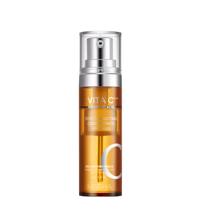 MISSHA Vita C Plus Spot Correcting Concentrate Ampoule е озаряваща ампула с Витамин C, която изсветлява тена, намалява хиперпигментацията и придава на кожата младежки вид. Съдържа Витамин C, ниацинамид, транексамова киселина, арбутин и екстракт от куркума, които действат ефективно за изсветляването на пигментните петна и имат силен ефект против стареене. Хиалуронова киселина, пантенол и глицерин се грижат за хидратацията и дълбокото подхранване на кожата, като я предпазват от вредните влияния на околната среда.