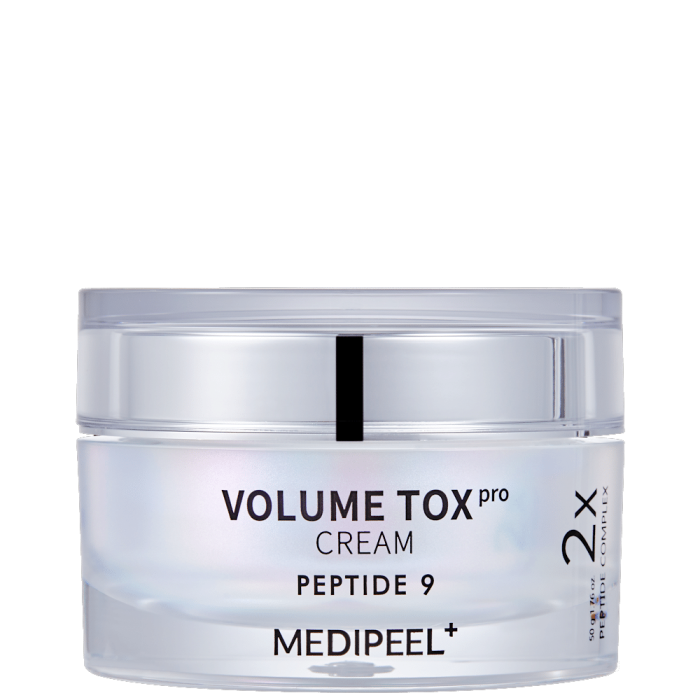 Кремът Medi-Peel Peptide 9 Volume Tox Cream Pro хидратира кожата, като спомага ефективно за стимулиране на производството на колаген и еластин, повдигайки кожата. Подобрява еластичността, бори се с фините линии и бръчки. Патентованата съставка Volufiline, извлечена от корен на Аnemarrhenae asphodeloides, стимулира образуването на липиди и спомага за естествен лифтинг ефект на кожата. Формула с 2 пъти повече концентрация на пептиди за стимулиране производството на колаген и еластин, и видим лифтинг ефект. Четирите вида хиалуронова киселина спомагат за доставяне на необходимата хидратация в дълбочината на кожата и задържането ѝ там за по-дълго време. Аргининът хидратира и действа успокояващо на кожата.