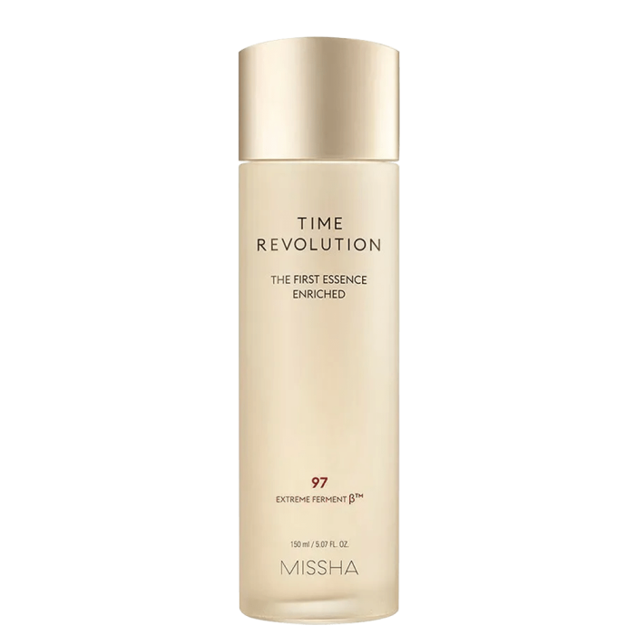 MISSHA Time Revolution The First Essence Enriched е озаряваща есенция против стареене, която съдържа 97% Extreme Cica Ferment, благодарение на който естествените защитни функции на кожата са укрепени, кожната бариера е подсилена а тенът е избистрен. Изглажда неравномерната текстура на кожата и възвръща младежкия ѝ вид.