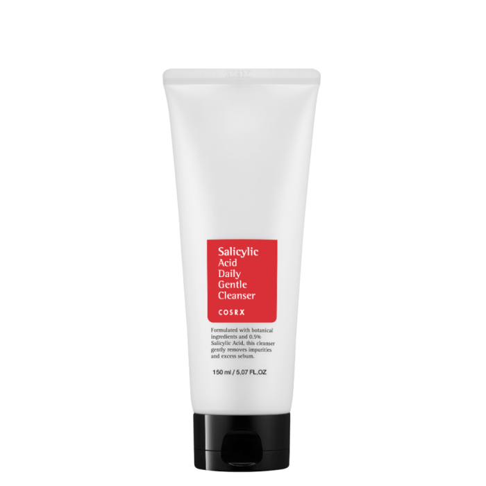 Cosrx Salicylic Acid Daily Gentle Cleanser е нежна почистваща крем-пяна, разработена за проблемна и акнеична кожа. Премахва остатъци от грим, замърсявания и слънцезащита, като едновременно с това ексфолира кожата и премахва мъртвите кожни клетки и черните точки.