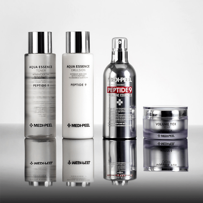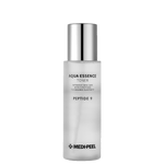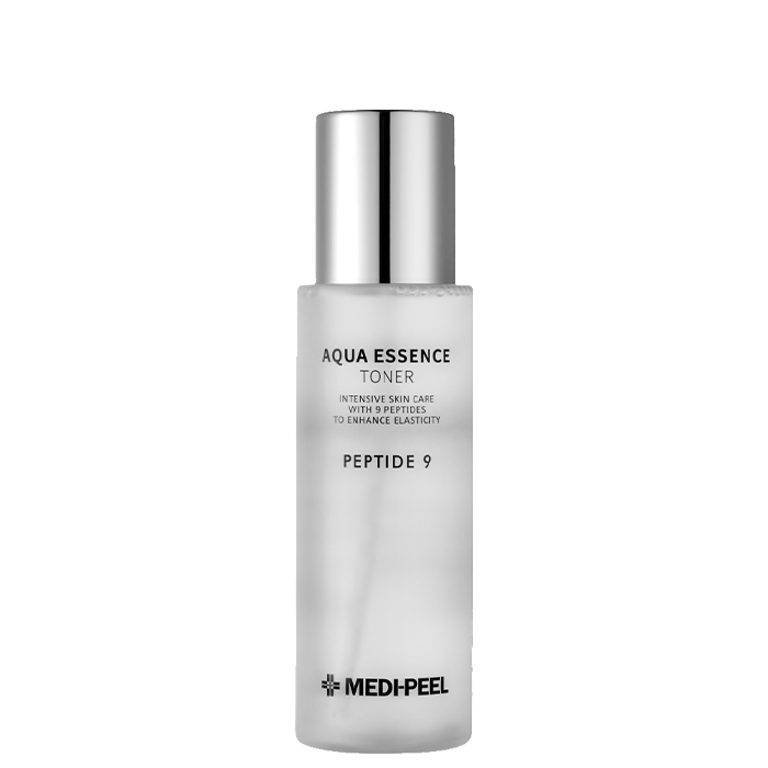 Тонерът Medi-Peel Peptide 9 Aqua Essence Toner хидратира кожата в дълбочина, подобрява нейната еластичност и има тонизиращо и успокояващо действие. Пептидният комплекс стимулира синтеза на протеини в кожата, като я оставя гладка, еластична, намалява дълбочината на бръчките и има подмладяващо действие. Пептидите помагат на компонентите да проникнат в по-дълбоките слоеве на епидермиса, с което подпомагат хидратацията и възстановяването на еластичността. Екстрактът от евкалипт има противовъзпалителни, заздравяващи, успокояващи и тонизиращи свойства. Стимулира производството на колаген и еластин в кожата.