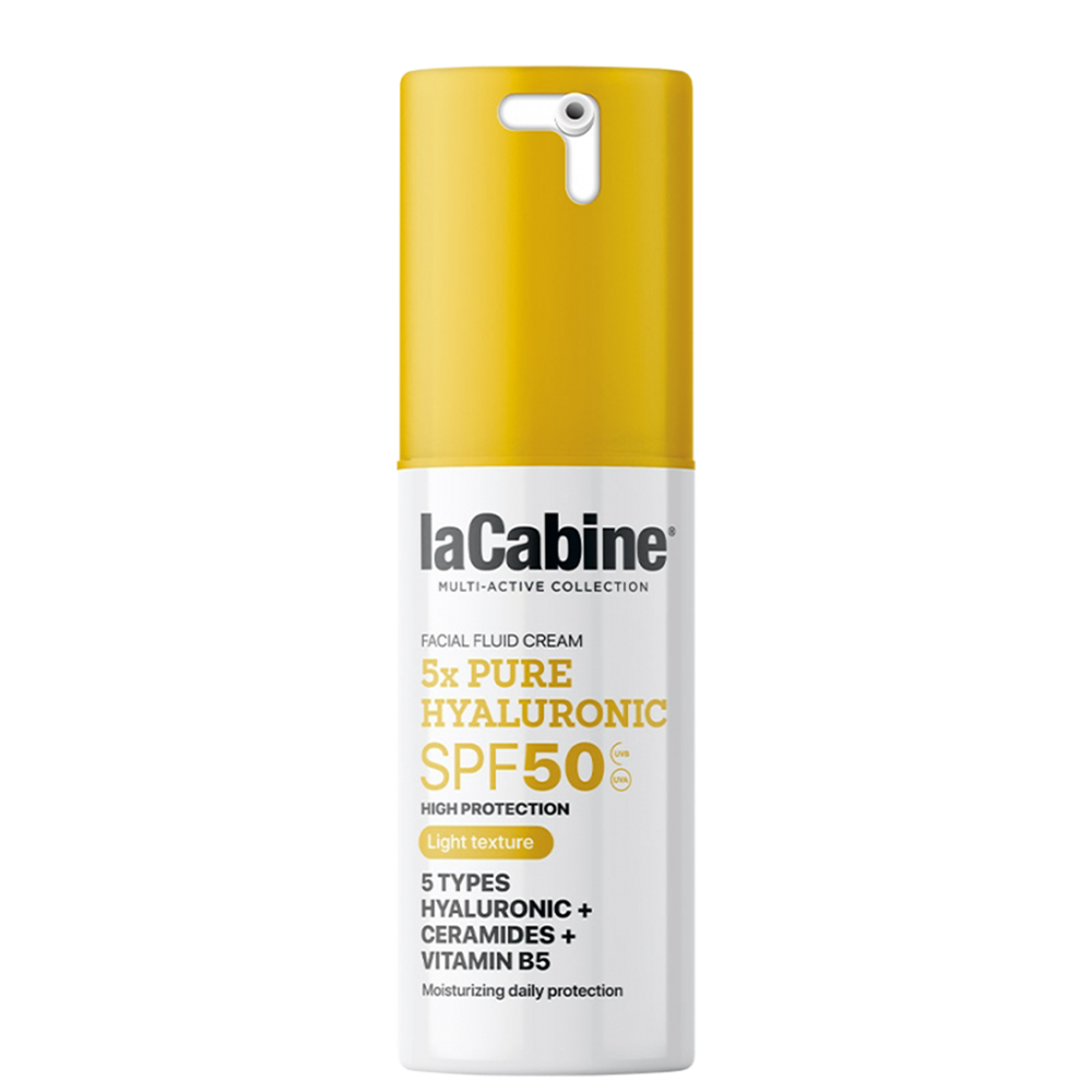 5x Pure Hyaluronic Facial Fluid Cream SPF50 е лек крем-флуид за лице с висок слънцезащитен фактор SPF50 и 5 вида хиалуронова киселина. Предотвратява фотостареене и увреждане от слънцето. Хидратира интензивно и дълготрайно. Подсилва защитната функция на кожата и предпазва от оксидативен стрес.