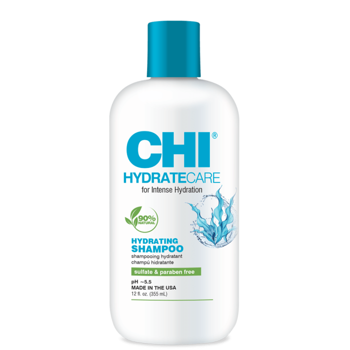 CHI HydrateCare Hydrating Shampоо е интензивно хидратиращ шампоан с 90% естествени съставки. Нежна формула, която деликатно почиства, хидратира и подхранва в дълбочина сухата коса. Ефективната комбинация от алое вера и морски водорасли възстановява увредената повърхност на косъма, стимулира растежа, повишава плътността и придава великолепен блясък. Полезните елементи съдържащи се в морските водорасли заздравяват косата и подобряват значително нейната структура, като същевременно се грижат и за скалпа. Добавените копринени протеини стабилизират нивата на влагата вътре в косъма и предпазват от накъсване и увреждане. CHI HydrateCare Hydrating Shampоо регенерира, интензивно хидратира и укрепва структурата на косата. Повишава еластичността, изпълва с жизненост и сила сухата коса, придава копринена мекота и изключителен блясък.
