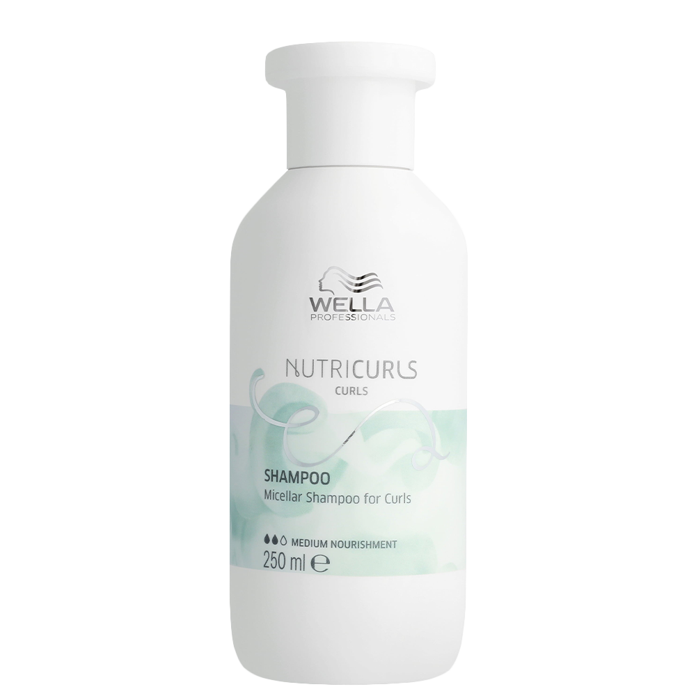 Wella Professionals Nutricurls Micellar Shampoo for Curls нежно почиства скалпа и помага за подхранването и поддръжката на перфектните къдрици и вълни на чупливата коса. Подпомага дълготрайното оформяне, придава подреденост и еластичност. Със средна степен на подхранване.