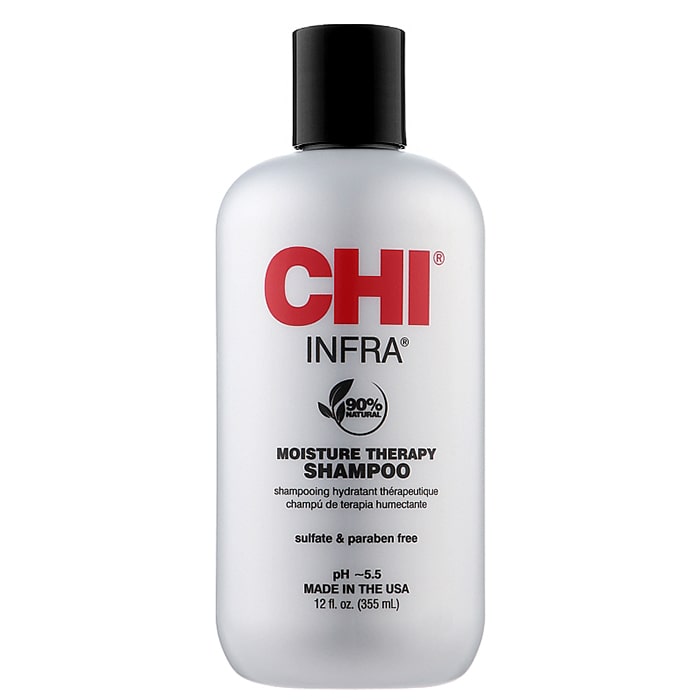 Шампоан Infra почиства косата и скалпа, прониквайки в косъма, за да го подсили отвътре-навън. Подобрява нивата на хидратация в косъма и в кожата на главата. Притежава мека формула, подходяща за ежедневна употреба и всеки тип коса. Ниското му pH 5.5 го прави изключително подходящ и за боядисани коси, защото предпазва цвета от избледняване. Формулата му с 90% натурални съставки включва: копринени протеини, кератин и витамин В5, които имат комплексно действие върху косата – изглаждат, озаряват, заздравяват и хидратират.
