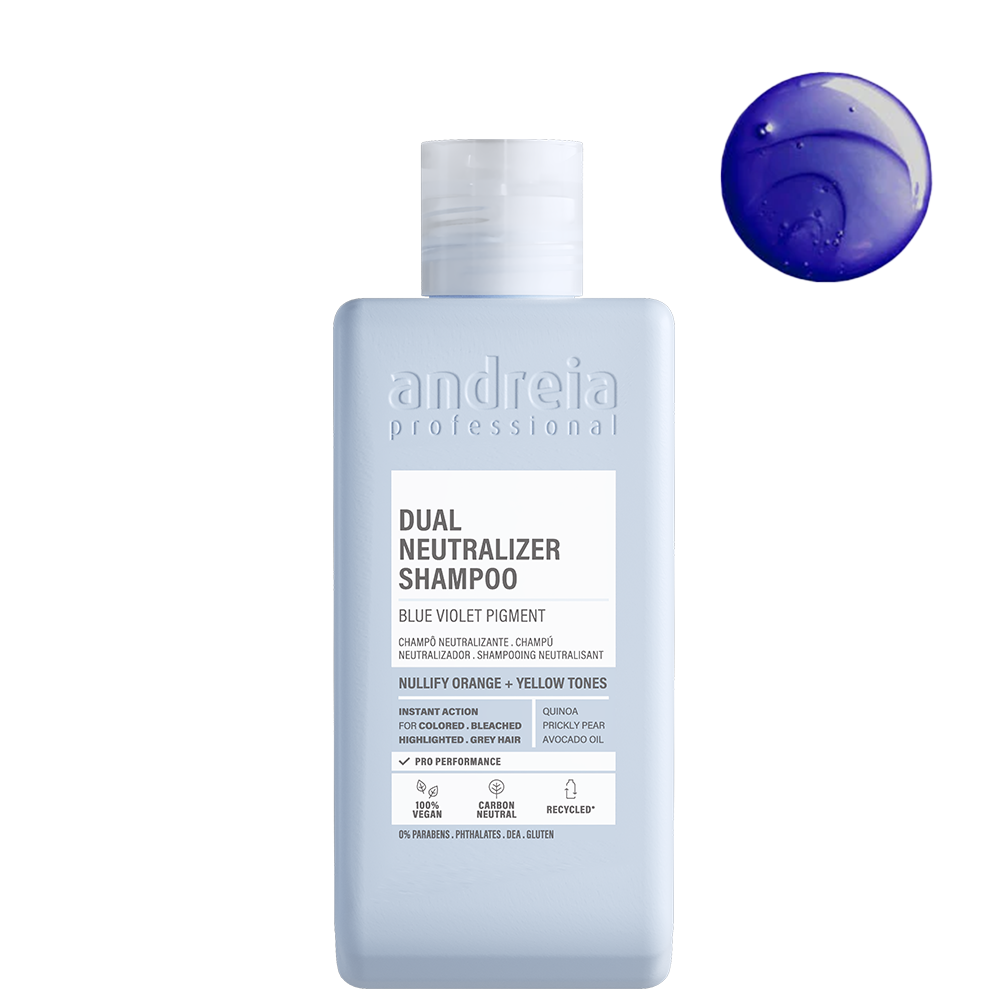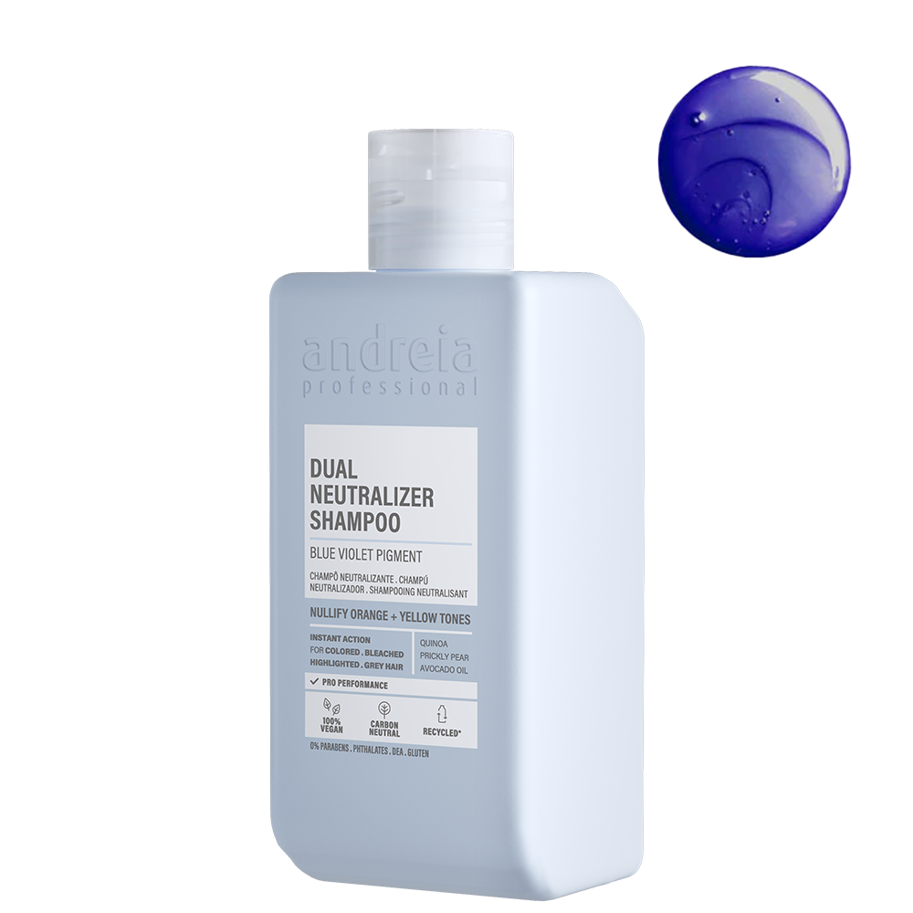 Веган тониращ шампоан против нежеланите топли нюанси за боядисана, изрусена, изсветлена и сива коса. Деликатно почиства и неутрализира нежеланите жълти и оранжеви тонове, като едновременно с това възстановява структурата на косъма, ревитализира и хидратира в дълбочина. Формулиран със синьо-виолетови пигменти шампоанът има незабавно действие и отлично елиминира топлите тонове, придава блясък и здравина на косата. Съдържа масла от авокадо, бодлива круша и протеин от киноа, които подхранват косата в дълбочина, придават блясък и здравина. Косата е мека и гладка на допир и същевременно защитена от агресивните фактори на околната среда.