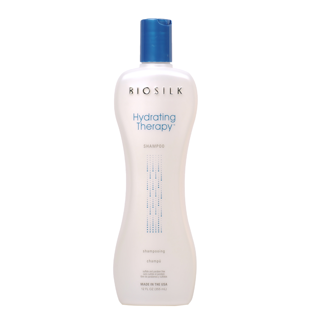Шампоанът Biosilk Hydrating Therapy хидратира в дълбочина сухата коса. Придава еластичност на всеки косъм, предпазвайки го от накъсване и цъфтеж. Формулата е на основата на копринени протеини, масло от маракуя и киноа, които съживяват и заздравяват косата. Предпазва косъма от пресушаване.