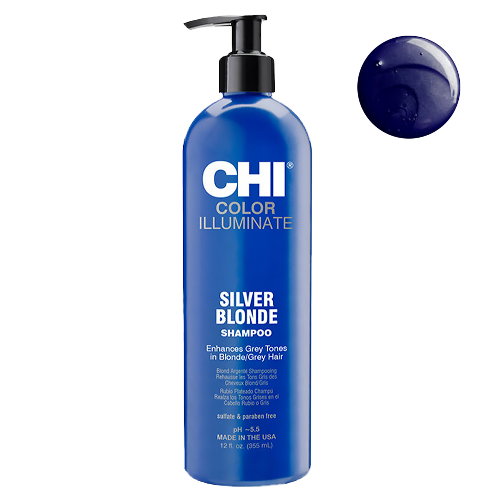 CHI Ionic Color Illuminate Silver Blonde Shampoo е нежен шампоан, който премахва замърсяванията от скалпа и поддържа цвета на русата коса студен между отделните боядисвания. Специалната му формула директно депозира микропигменти, които помагат за премахване на топлите тонове.