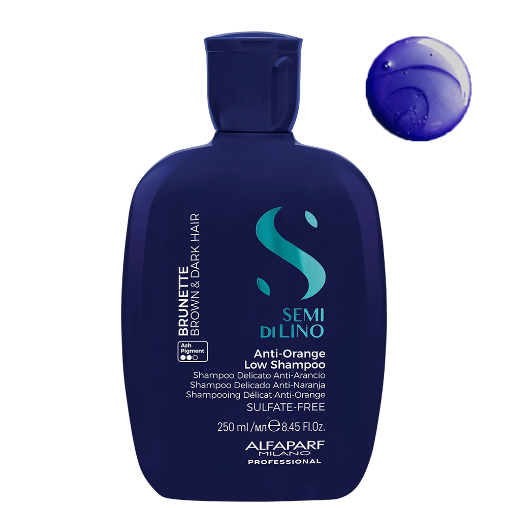 Alfaparf Brunette Low Shampoo е шампоан против нежелани оранжеви оттенъци, предназначен за естествена или боядисана кестенява и тъмна коса. Почиства деликатно, неутрализира нежеланите топли нюанси и осигурява дълбоко подхранване и укрепване на фибрите на косъма. Веган формулата включва естествени активни съставки, които защитават цвета на косата от синята светлина. Brunette Low Shampoo спомага за поддържане на блясъка и наситеността на цвета, като прави косата по-силна и здрава.