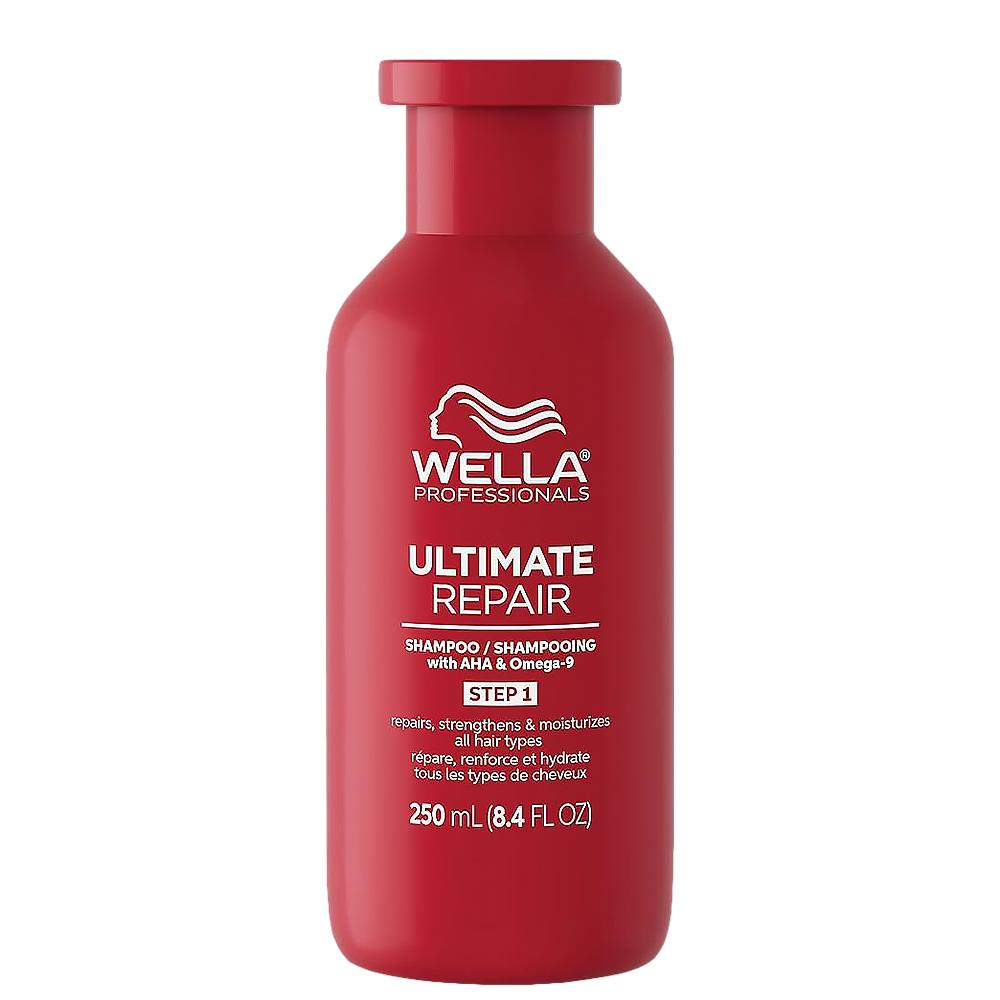 Възстановяващ шампоан за увредена коса Wella Professionals Ultimate Repair Shampoo има богата, кремообразна текстура за нежно и ефективно почистване на скалпа и косата. Премахва всички замърсявания, които могат да окажат негативно влияние върху косата (метали, натрупвания от продукти, масла и замърсявания от околната среда) и полага основите за възстановяването ѝ. Специалната комбинация от AHA и биоидентичен Омега-9 осигурява максимално възстановяване, което може да се види и почувства. Алфа-хидрокси киселината е органична киселина с малък размер на молекулата, способна да проникне на изключително дълбоко ниво във фирбата на косъма. Възстановява водородните връзки в кортекса, за силна коса от вътрешността. Биоидентични липиди се фокусират върху външната част на фибрата на косъма. Покриват повърхността и запълват кутикулата, създавайки защитна бариера.