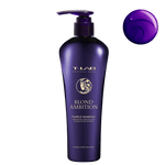 Виолетов шампоан T-LAB Blond Ambition Purple Shampoo подобрява цвета на русата коса и успокоява чувствителния скалп, стимулирайки естествения растеж на косата. Подходящ за руса и изрусена коса, коса с омбре, балеаж и коса на кичури. Съдържа лилав пигмент, който премахва нежеланите медни и жълтеникави оттенъци, подсилва белите тонове за ослепителни студено руси нюанси. Обогатен с основни витамини, минерали и аминокиселини, той не само елиминира медните оттенъци, но и подхранва и хидратира русата коса. Възстановява хидролипидната структура на косата, успокоява раздразнения скалп и прави косата естествено гладка и еластична. Съдържа 98,6% натурални съставки.