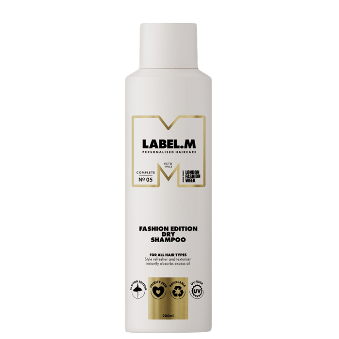 Label.m Fashion Edition Dry Shampoo е твоето спасение между измиванията на косата! Освежава косата, възстановява обема и еластичността. Оризовото нишесте абсорбира излишния себум и косата изглежда чиста, като след измиване! Ексклузивният комплекс Enviroshield предпазва косата от вредното влияние на топлината и UV лъчите.