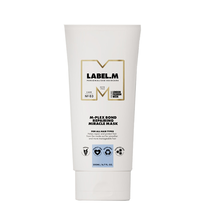 Label.m M-Plex Bond Repairing Miracle Mask хидратира косата в дълбочина, благодарение на комбинацията от ексклузивните Label.m технологии M-Plex и Hydropower Bond. Растителните протеини и интензивно хидратиращи съставки, включващи суперхрани, правят косата по-здрава, мека и видимо по-гладка.